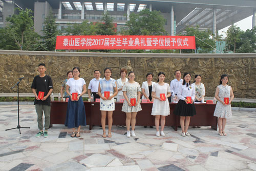 院长助理张爱华宣读了《关于表彰2017届优秀毕业生的决定》,泰山医学院副院长徐淑凤和beat365在线唯一官网领导为毕业生代表颁发了毕业证书,为省级优秀毕业生颁发了荣誉证书。