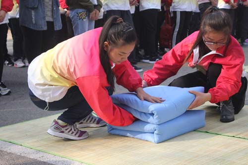 本次比赛共分48组进行,各组均由两名同学分工合作完成叠被。比赛期间,参赛选手以流畅的动作和娴熟的技巧,默契配合、沉着冷静地展示着自己的能力和风采。现场气氛热烈,掌声阵阵。最后,经过激烈的角逐,2016级王玉贞、王琳和丁卫玲、张丹阳两组同学脱颖而出,获得评委团一致好评,荣获本次比赛一等奖。
