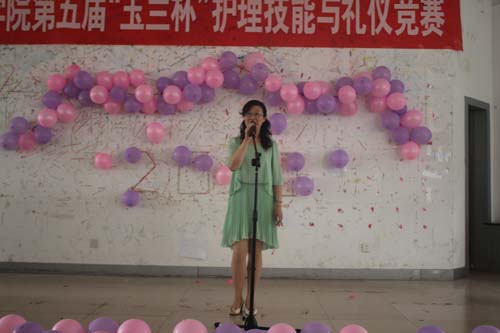 整个比赛紧张有序,经过层层选拔共有八组选手闯入决赛。参赛选手身着整齐的护士服,向观众展示了如何拿病历夹,推车,坐姿,站姿以及初次见面的交际语等,赢得同学们阵阵掌声。最终,经过激烈的角逐,来自2013级本科六班的郭广仁同学获得一等奖;来自2013级的牟一平、安然、王玮、李圣楠同学分别获得二等奖和三等奖;张玉霞、朱燕燕等同学获得优秀奖。