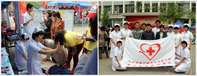 本届“青年风尚节”共有29家泰安市社会青年组织参展,是一次旨在助推共青团组织与青年社会组织开拓创新,集中展示青年风尚的盛会。通过本次活动,南丁格尔志愿服务队不仅向市民宣传了健康急救知识,更重要的是同学们通过自己的实际行动传递了向广大市民传递了正能量,为学校赢得了良好的社会声誉。