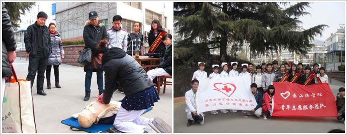 2013年3月23日,beat365在线唯一官网南丁格尔服务队与泰山医学院青年志愿者服务总队走进泰安市阳光小区,开展“医疗知识进社区”活动。