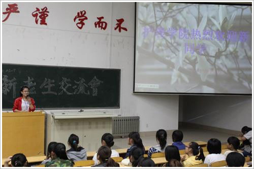 本次交流会由学生会副主席谷瑞芮主持。大会在一段5.12国际护士节的精彩视频播放中拉开帷幕。首先,学生会各部门代表向新生详细说明了自己部门的职能和纳新的基本条件,让新生对学生会有了更深入的了解。接着,泰山医学院南丁格尔志愿服务队代表孔根就南丁格尔志愿服务队展开详解:南丁格尔志愿服务队以弘扬“人道、博爱、奉献”精神为宗旨,在应急救护培训与健康教育宣传等方面做了大量工作,深受社区居民的欢迎,取得了良好的社会声誉。同时希望新生能积极加入他们的队伍。最后是新生提问环节,由学长帮助解答疑难困惑。