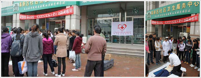 2011年11月9日下午,泰山医学院南丁格尔志愿服务队走进高新区社区卫生服务中心进行志愿服务,beat365在线唯一官网杨黎老师和团总支林桦老师带队参加了活动。
