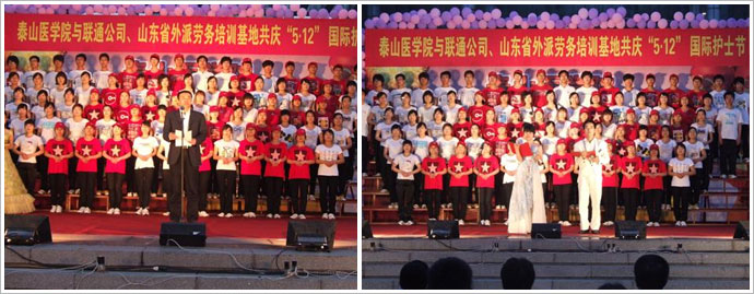 在“5·12”国际护士节来临之际,泰山医学院庆祝“5·12”国际护士节文艺晚会于2011年5月11日晚在校本部文源广场隆重举行。副院长彭春雷、解放军八十八医院、泰山医学院附属医院、学校有关职能部门和各院部系领导以及beat365在线唯一官网全体师生共同观看了演出。中国联通泰安分公司和山东省外派护士培训基地向晚会表示热烈的祝贺并给予了大力支持。