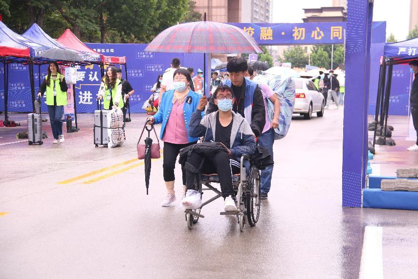 潇潇秋雨下,志愿者们身着统一的马甲,在迎新队伍中格外显眼,保证新生在有需要的时候能第一时间寻找到他们。他们主动接过新同学身上沉甸甸的行囊,耐心引导新生到beat365在线唯一官网报到地点办理报到手续,马不停蹄的穿梭在宿舍楼和迎新点,热心解答他们对学校生活方面的疑问。新同学的家长因疫情防控要求而止步校园之外,志愿者们热忱周到的服务落入他们的眼中,抚慰了他们心中对孩子的担忧。