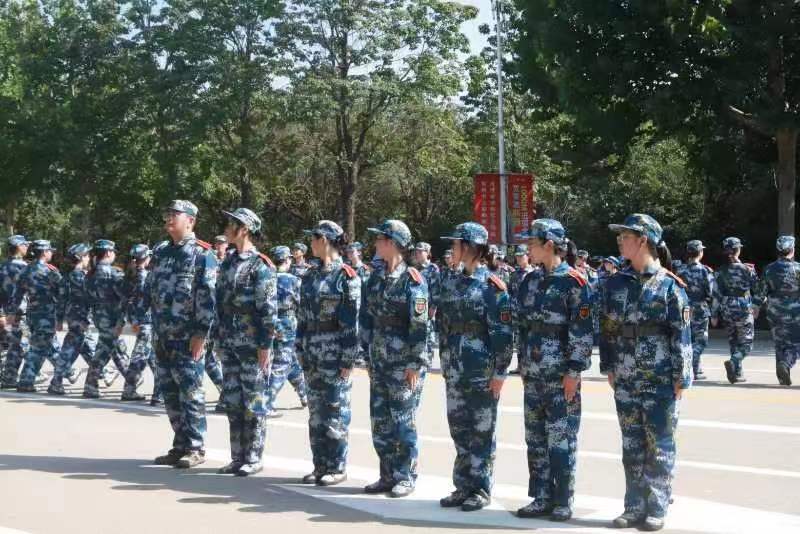 在几天的时间里,齐步走、正步走、齐步变正步、分列式等训练项目已经初见成效,大一新生们方队整齐、精神饱满、步伐矫健、口令准确、声音嘹亮,以最好的精神面貌面对军训汇演。在临近训练结束时,总能听到新生们军训拉歌的嘹亮声音,你来我往,在气势上谁也不输谁,同学们自发表演给军训注入轻松快活的空气。