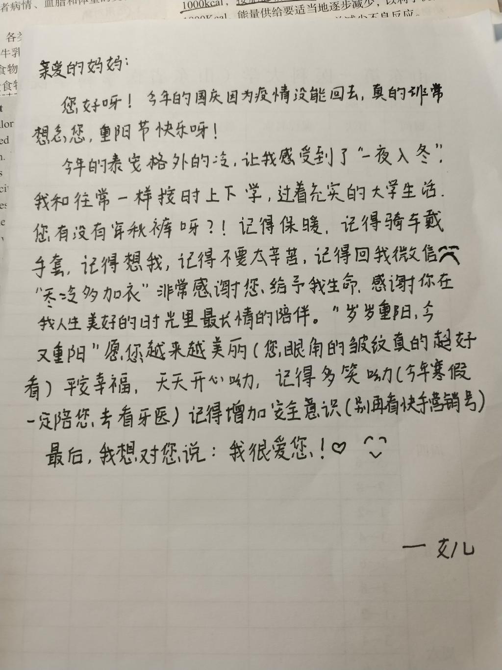 独在异乡为异客,每逢佳节倍思亲。远离家乡的同学们,通过绘画、书信、微信视频、电话等方式表达对家人的挂念和祝福,将关心化作实际行动,让爱体现在细微之中。