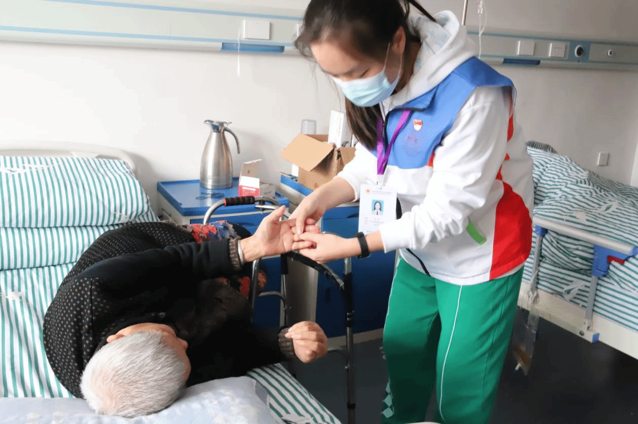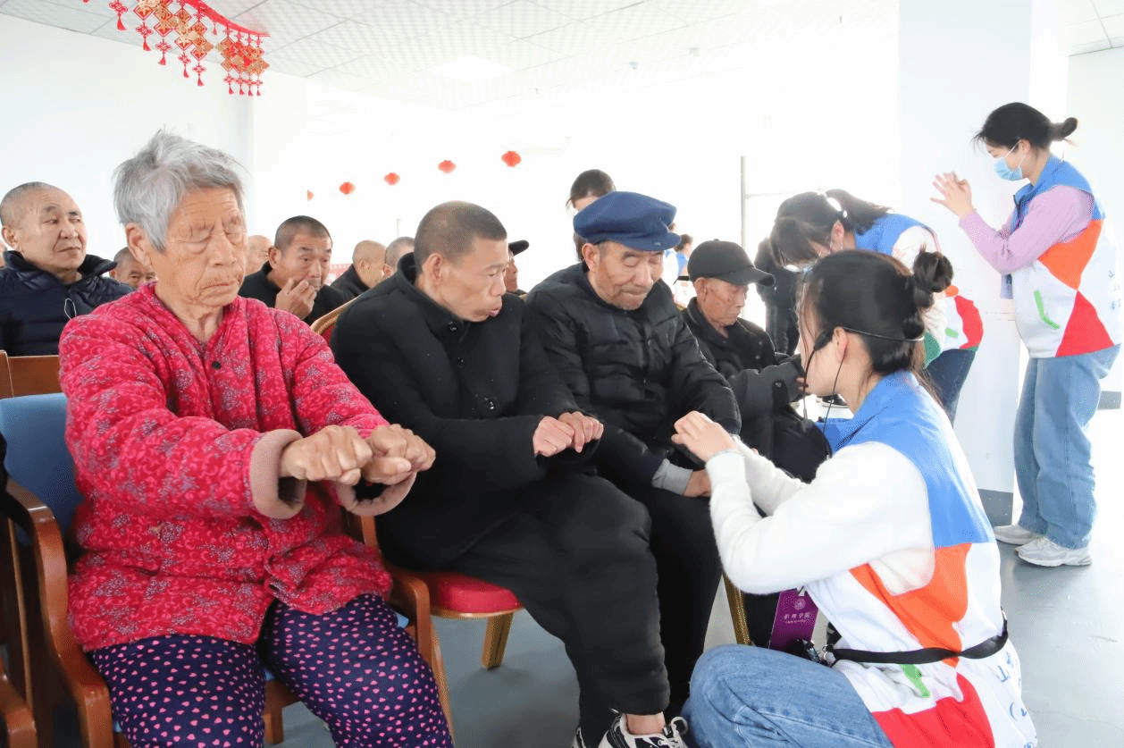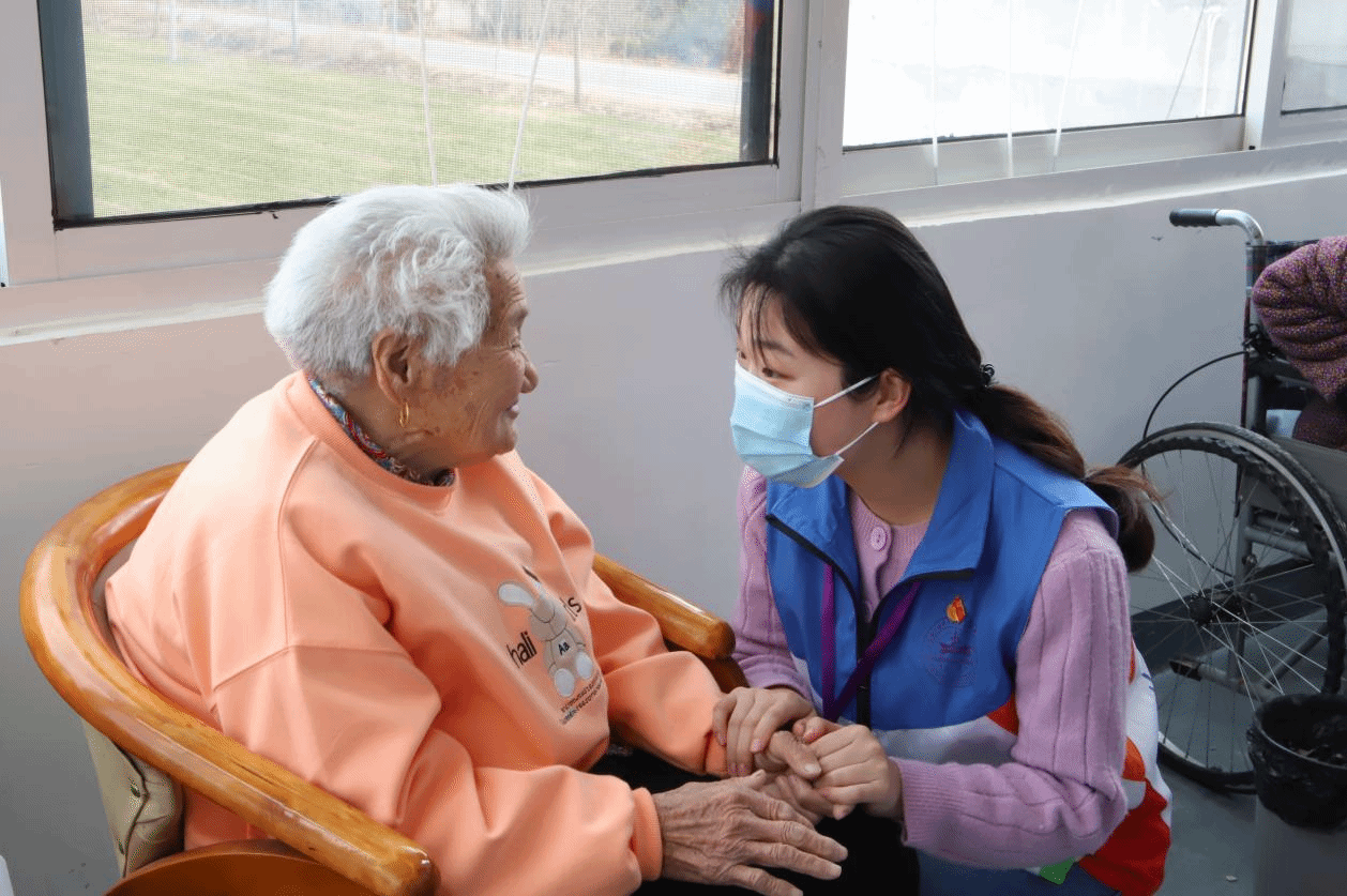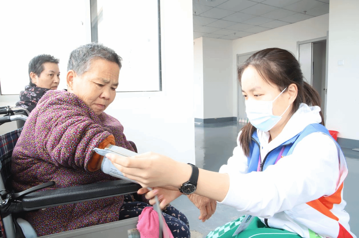 启动仪式结束后,服务队队员进入养老中心各房间,与老人们开心交谈,关心他们的衣食起居。他们为不便出席的老人测血压、测血糖,同时宣讲预防跌倒的健康知识、老年人常见疾病及认知误区,并针对测量结果提供专业的保健知识。队员们的陪伴让老人感受到青年志愿者带给他们的温暖,工作人员对同学的到来表示感谢,活动在欢歌笑语中结束。