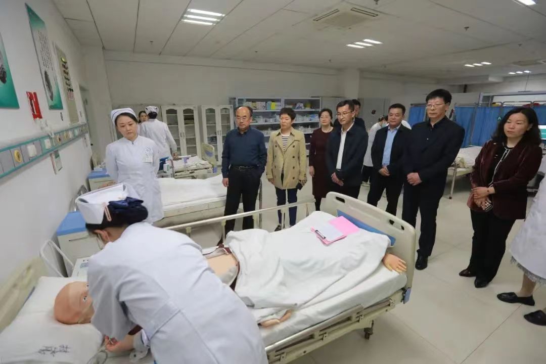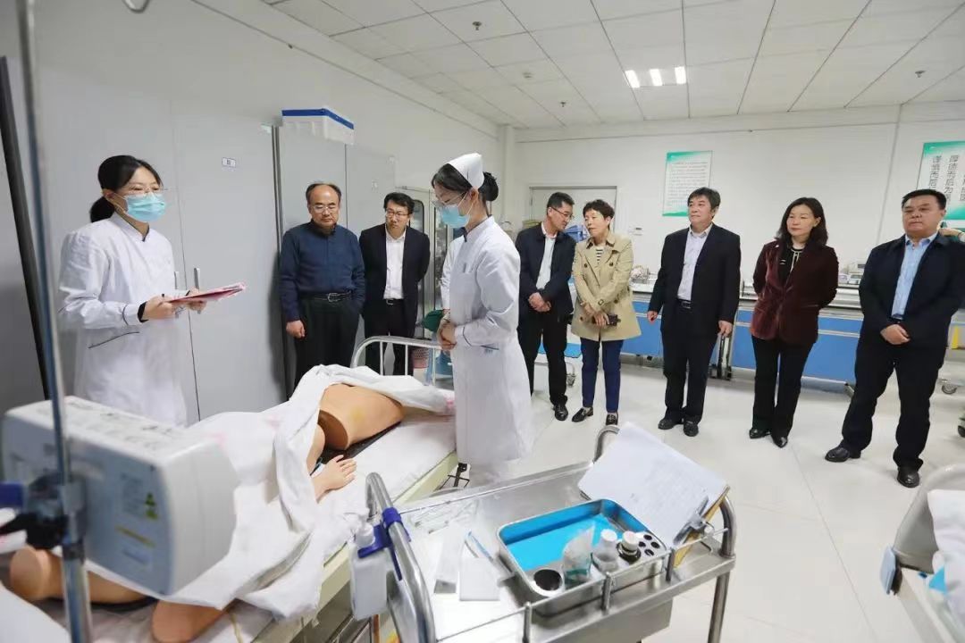 2023年4月27日下午,beat365在线唯一官网副校(院)长刘传勇到第二附属医院临床技能培训中心,看望备战山东省大学生医学技术技能大赛护理学专业赛道的集训选手,并实地调研指导工作。校(院)医院管理与疾病控制部部长马洪玲,第二附属医院党委书记曹铭锋、院长肖强等领导班子成员,学院党委书记张延玲、副院长陶如参加活动。