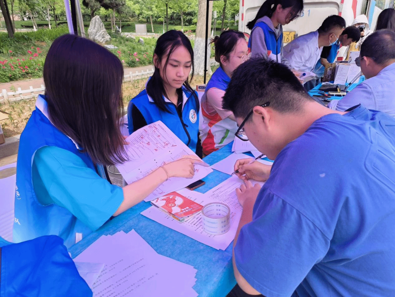 活动当天,服务队队员们提前到场,做好无偿献血活动准备工作。在献血车周围积极宣传无偿献血的有关知识,为感兴趣的同学答疑解惑,鼓励同学们积极参与献血活动。在队员的耐心引导下,献血的同学逐一完成填表、登记等程序后,挽起袖子,等待抽血,整个献血流程秩序井然、畅通无阻。为了表达对献血的同学们的感谢,在献血观察结束后,志愿者还为他们送上了小礼品,希望温暖与真情在每一位山一大学子的心中流淌。活动期间,共计500余人参与献血,极大地补充了地方血液库存。