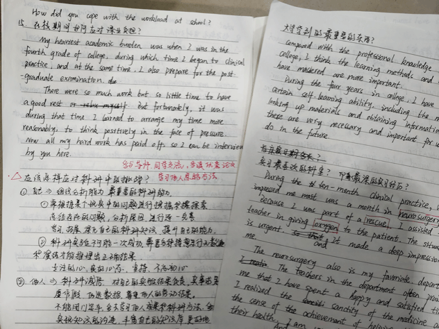 英语听说能力方面,老师十分温柔,听不懂可以请老师再重复一遍或者换个问题,老师全程对着你温柔微笑,放心大胆答题就行。夏天学姐发了一些关于复试时英语问题的文章,我根据问题和自己情况写了回答,准备了20+的问题答案,但是考场上提问的两个问题都是我没准备到的,所以,一定要做好万全准备。