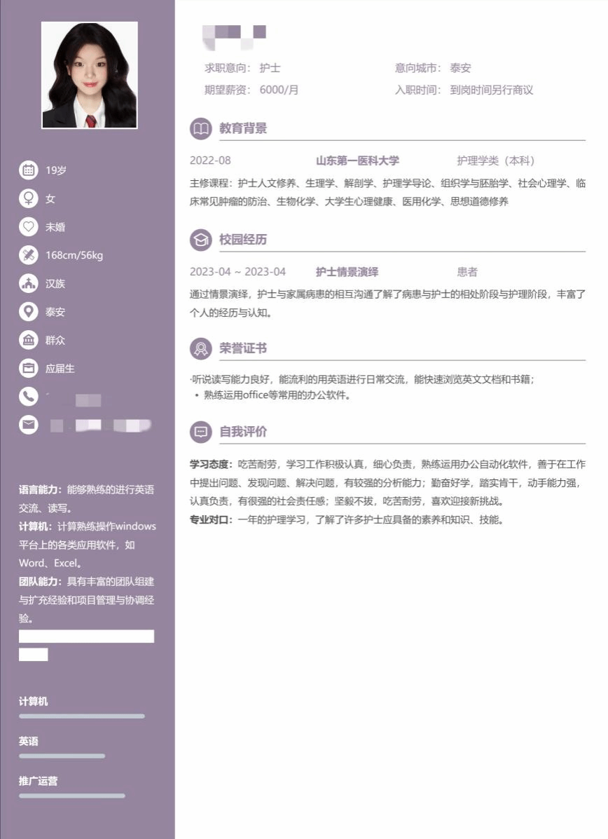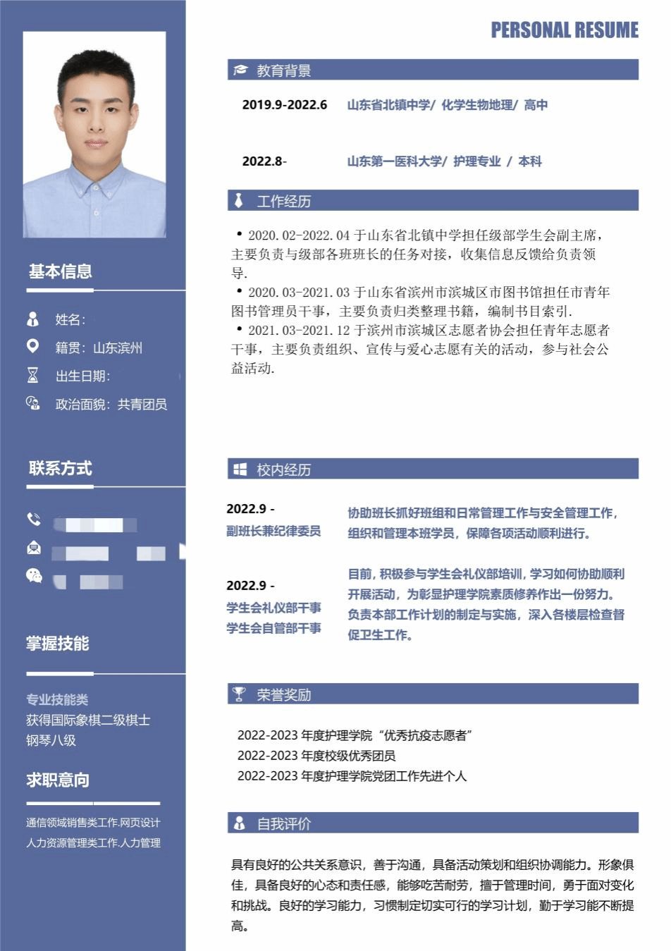 本次活动中涌现了许多优秀作品,让我们一睹护理学子在模拟面试场中的精彩简历。