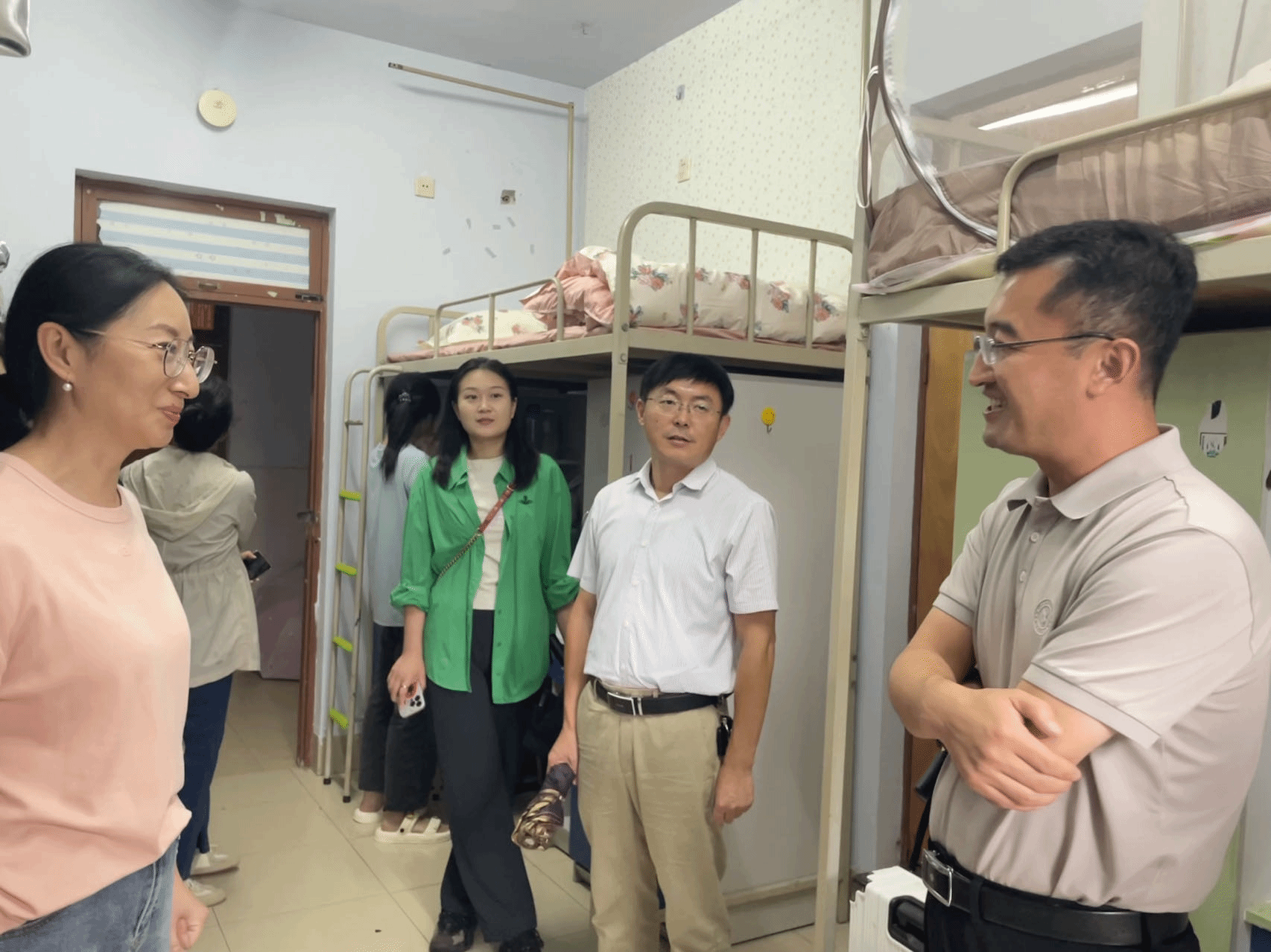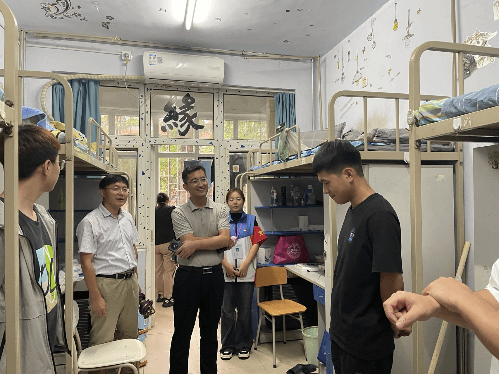 为深入了解新生生活环境和入学情况,引导新生适应新生活、新环境,确保迎新工作有序推进,8月27日,beat365在线唯一官网党委书记张延玲、副书记林桦和学工办、团总支负责同志以及新生辅导员等,深入走访2023级新生宿舍,为同学们送去真挚的关心与问候。