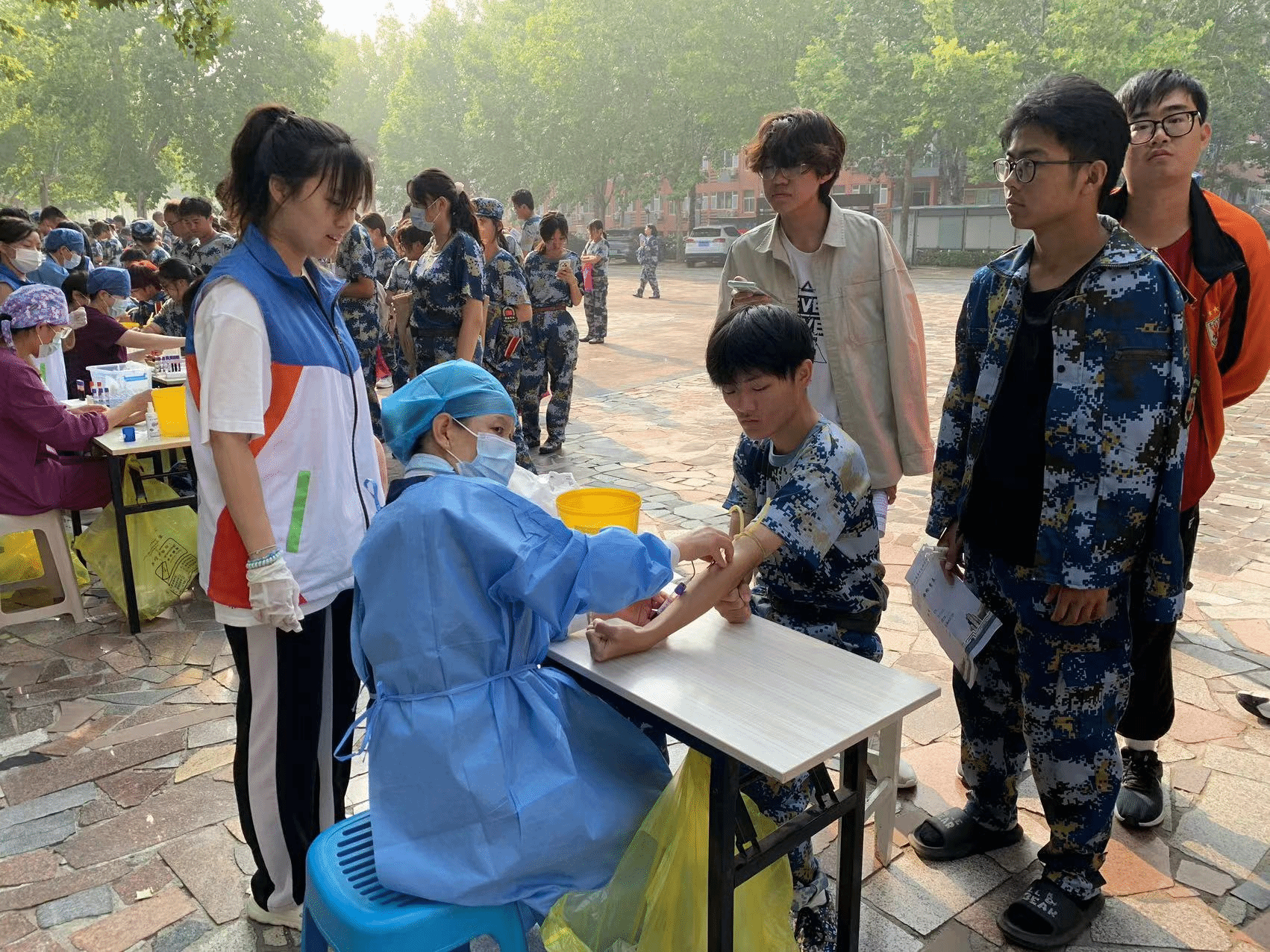 新生体检于早晨五点半开始,志愿者们准时上岗,新同学在班级负责人的带领下到达体检场地排队等候。体检过程中,beat365的志愿者们分工明确、认真负责,及时疏导队伍,协助医务人员完成编号、发采血管、抽血、排序、化验、血液样本封箱等工作,提高体检效率。志愿者们耐心安抚害怕抽血的新生,遇到有晕血、低血糖的同学,志愿者们协助校医院老师及时送他们到室内休息,每个小组的抽血任务都能够高效地完成,新生体检各环节井然有序。