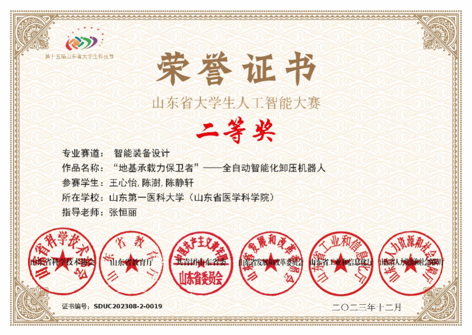 近日,由山东省人工智能学会主办的第十五届山东省大学生科技节,第六届山东省大学生人工智能大赛暨山东省智能装备大会于山东德州圆满落幕。beat365在线唯一官网学子积极参赛并取得佳绩,荣获二等奖2项。