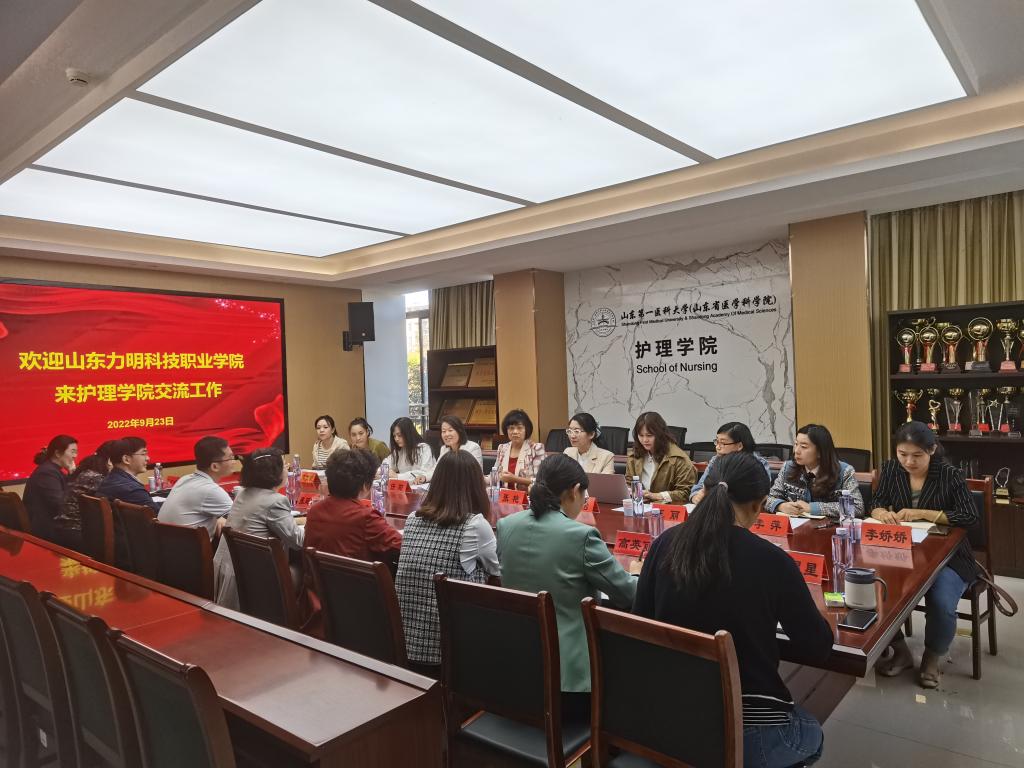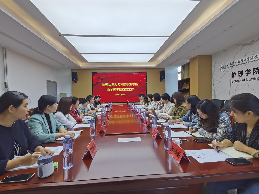 9月23日,山东力明科技职业学院院长于爱莲一行10人来beat365交流工作。院长柳韦华、党委书记张延玲等学院党政领导班子成员和科级干部、教师代表参加座谈交流。