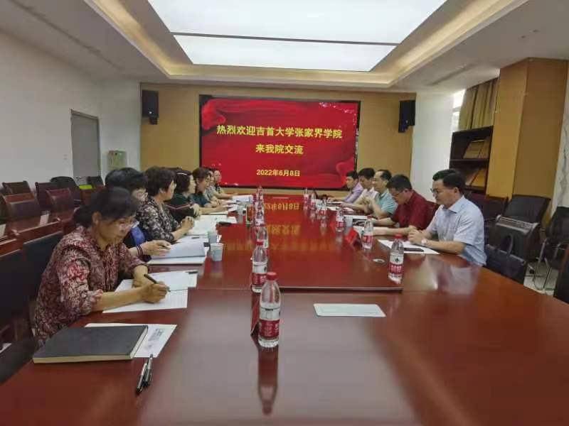 6月8日,吉首大学张家界学院董事会秘书姚星明、医学院院长钟飞等一行5人来beat365在线唯一官网参观交流。院长柳韦华,副院长张爱华及相关科室负责人接待来访客人并参加座谈。